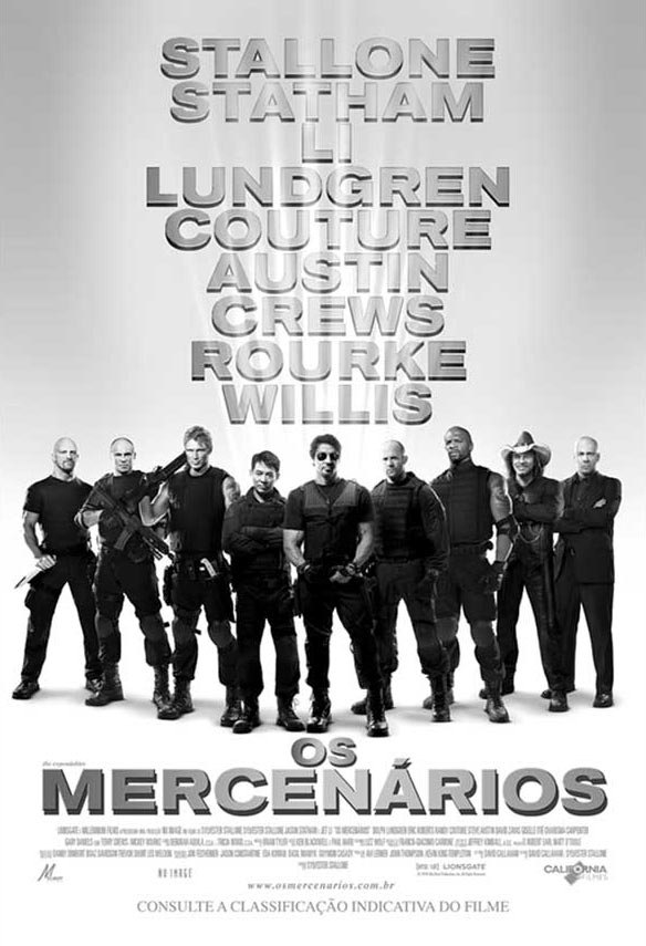O que esperar deste filme? Cinco ou seis carinhas bad boys da velha guarda, um traficante ditador na América Latina escondido atrás de um exército incompetente e muito ruim de mira e uma mulher bonita em apuros. Nossos impenetraveis heróis tem a missão de derrubar o ditador e salvar a mocinha. Já ouviram uma história destas antes? A Trilha sonora se resume a tiros, facadas e explosões, muitas explosões. Com algumas pitadas de humor e participações relâmpago de Bruce Willis e Arnold Schwarzenegger este é mais um filme de ação com a carinha do Stallone. É muito sobrenome pra pouco filme, mas o faturamento está garantido. Patriotismo a parte, Giselle Itié é a rosa vermelha neste filme preto e branco.